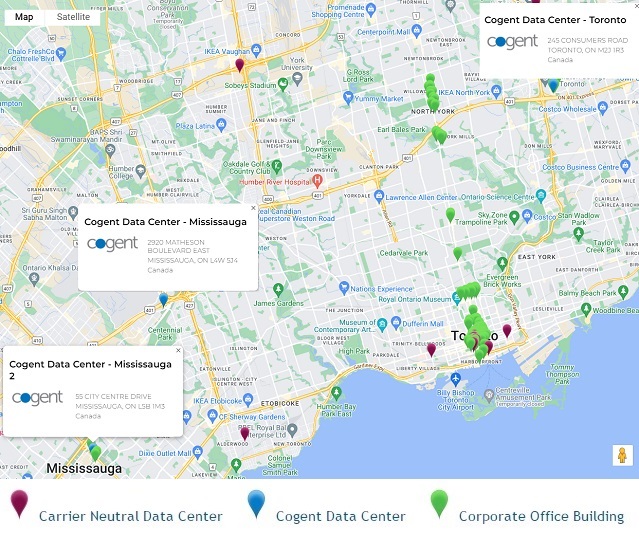 Cogent has many other On-Net buildings in the greater Toronto area, including office buildings and other data centers.