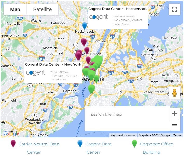 Cogent has many other On-Net buildings in the greater New York area, including office buildings and other data centers.
