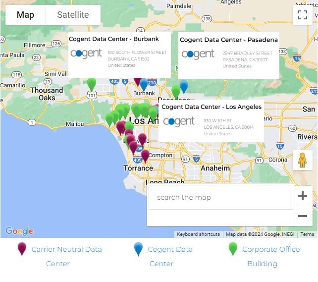Cogent has many other On-Net buildings in the greater Los Angeles area, including office buildings and other data centers.